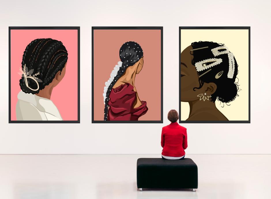 This colorful and bold art series tells an impactful story about self-love. It accentuates the beauty of textured hair and hairstyles that have historically been labeled subpar, unprofessional, or unkept. While decorative, the florals serve as symbols of affirmation, and each one has a meaning.