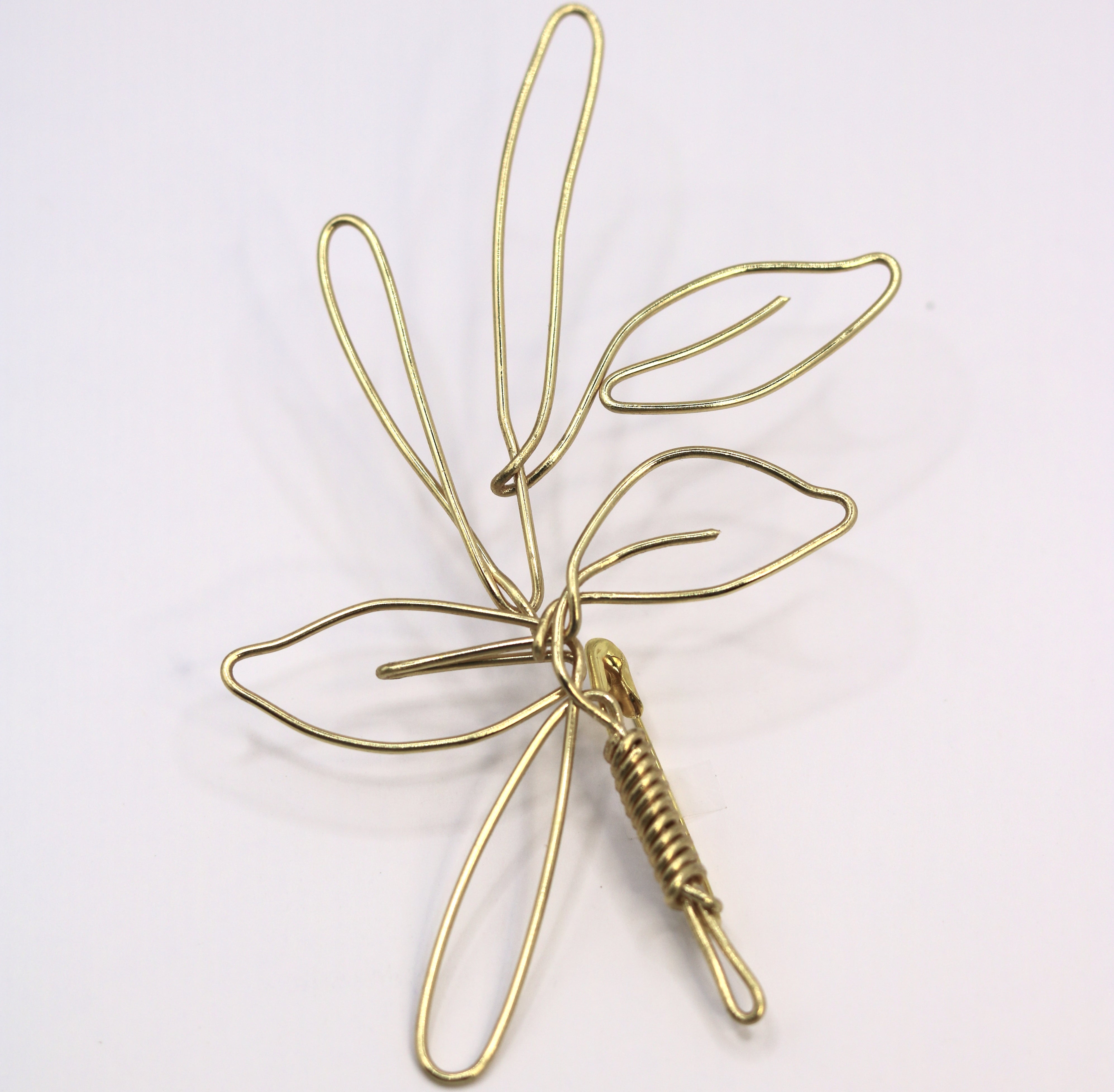 Work with our design team to bring your ideas to life through wire. All custom boutonniere designs will be available as a pin to safely attach to clothing. Boutonnières can be made in various sizes and colors. Wire colors include Bronze (copper), Gold (brass or 14k gold filled), Rose Gold, or Silver (stainless steel). Ready? Start your custom order. We take custom orders up to 2 years in advance.