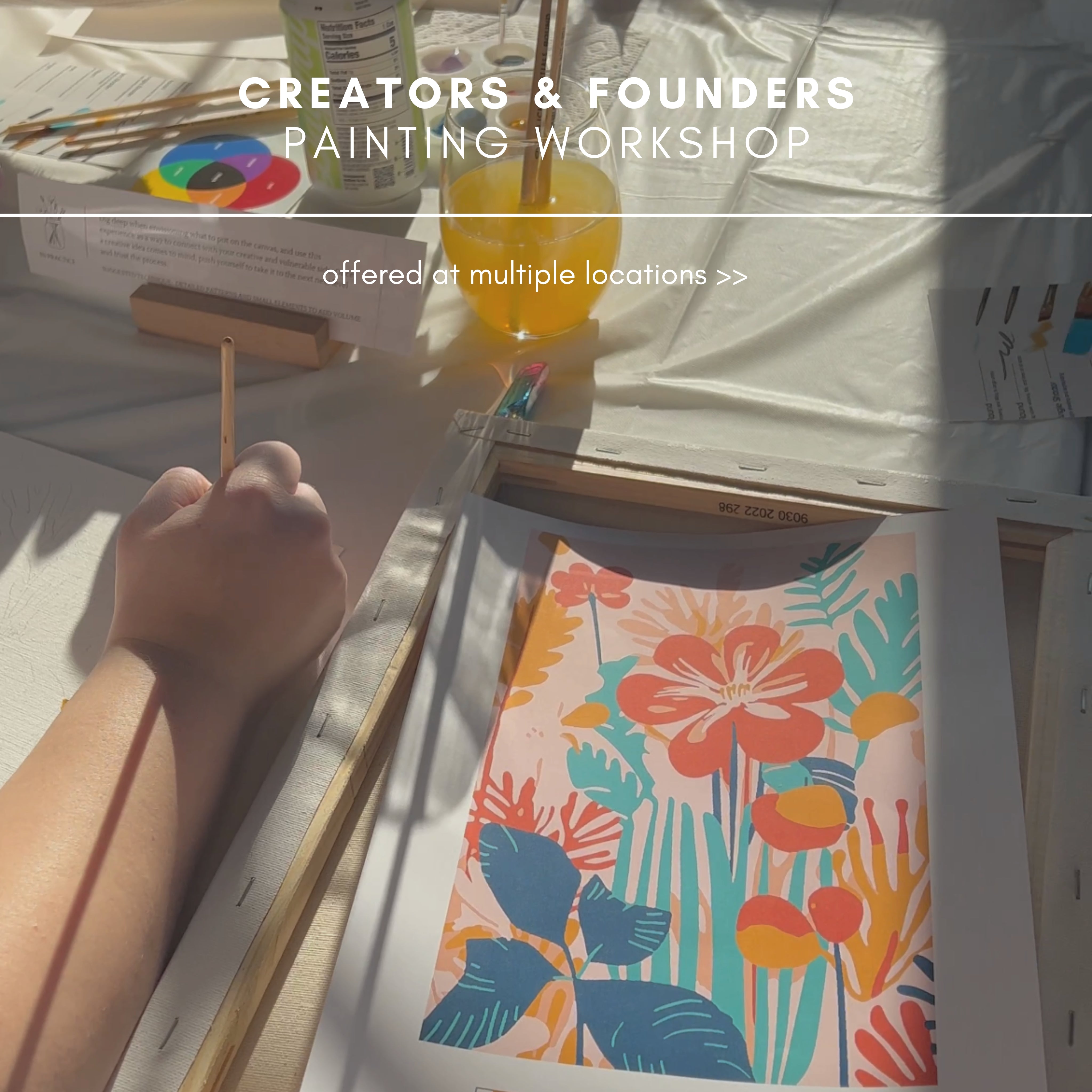 Come as you are, paint as you are! This is a non-competitive space, we welcome Creators and Founders of all experience levels, as well as mediums and industries. No expectations, just vibes as you paint and mingle. The goal is to leave with a piece of work and a piece of mind—feeling inspired and lighter. You might even leave with a new friend or two (but no pressure!).