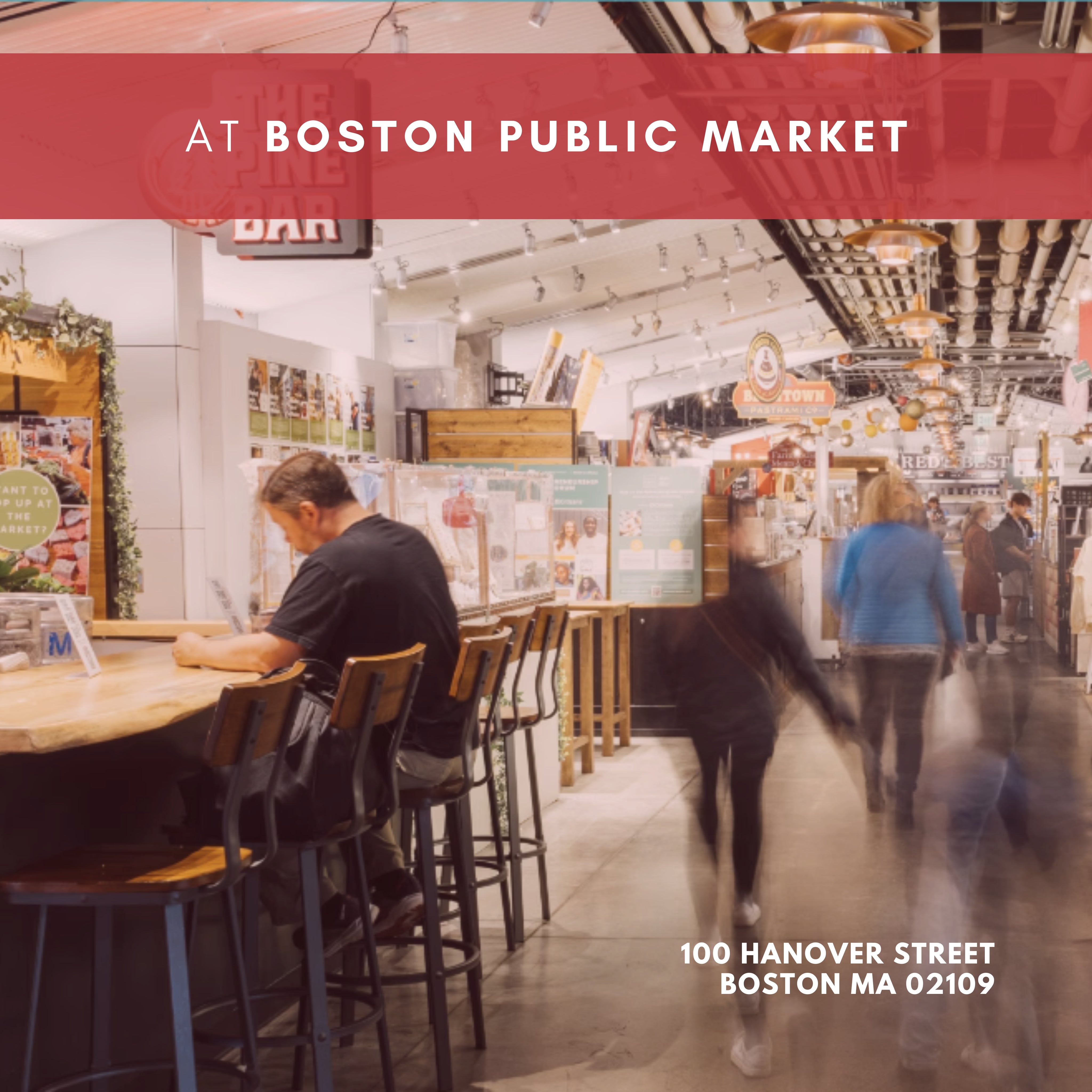 Want to Sip or Snack on something while you paint? Food and beverages are available for purchase at the Pine Bar and many local food vendors within the Boston Public Market. The Boston Public Market is an indoor, year-round marketplace that serves as the perfect hangout to shop, eat, and explore. It is right on the Orange or Green Line, and there is also a public parking garage with rates starting at $3.