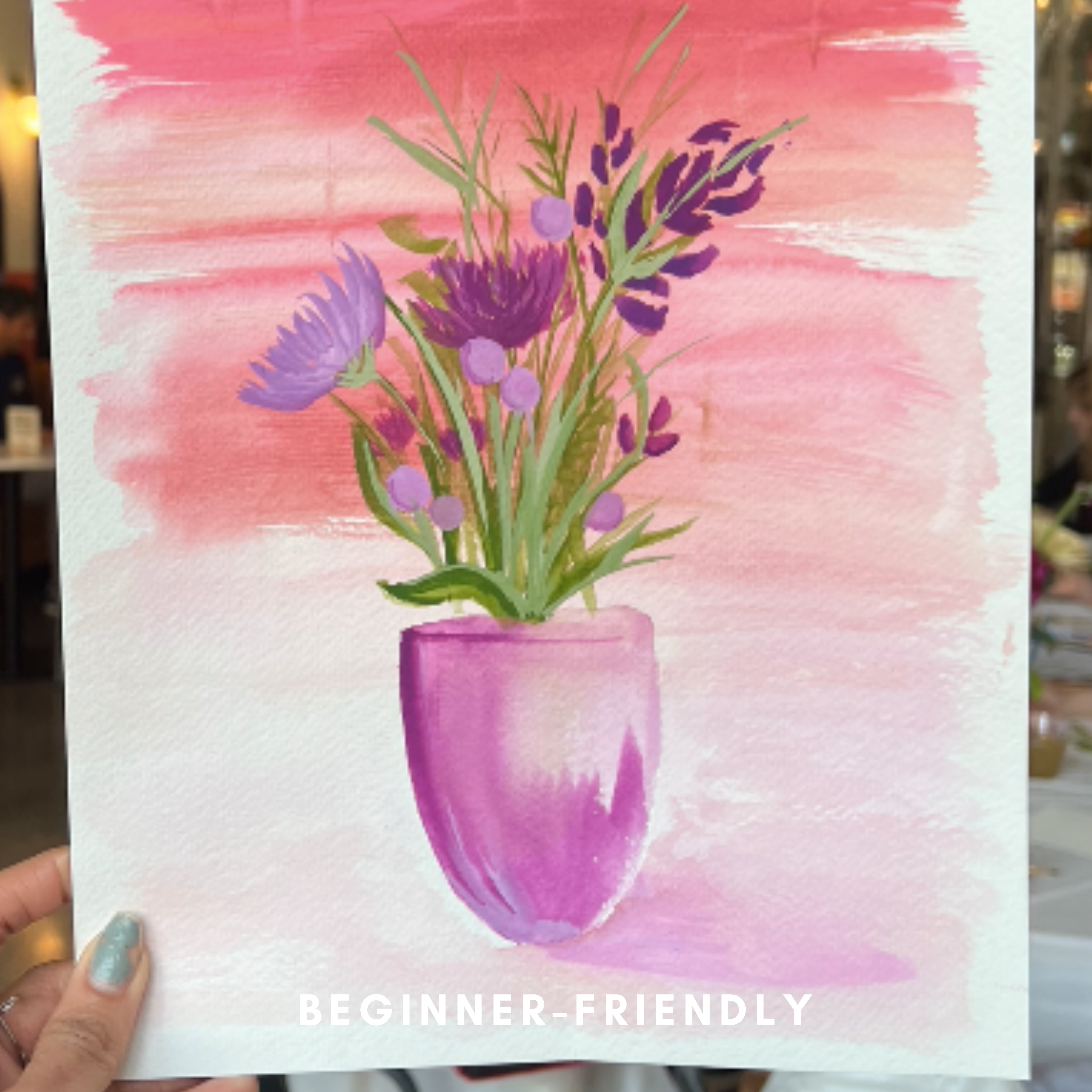 “The workshop was wonderful with a welcoming and friendly atmosphere. It made watercolor painting feel accessible. Highly recommend!